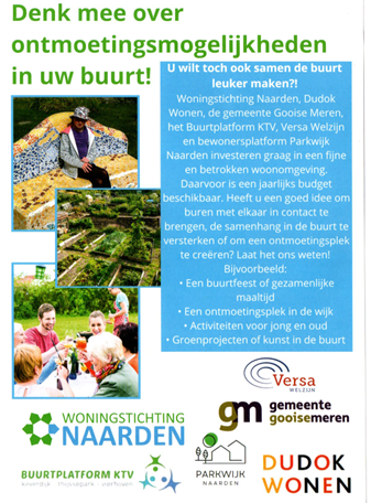 Ook u als bewoner van Parkwijk Naarden kan meedoen met “ontmoetingsmogelijkheden in uw buurt”.